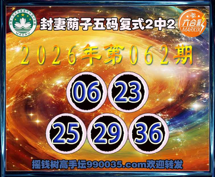 066期:【封妻荫子】【五码复式2中2】 高手验证
